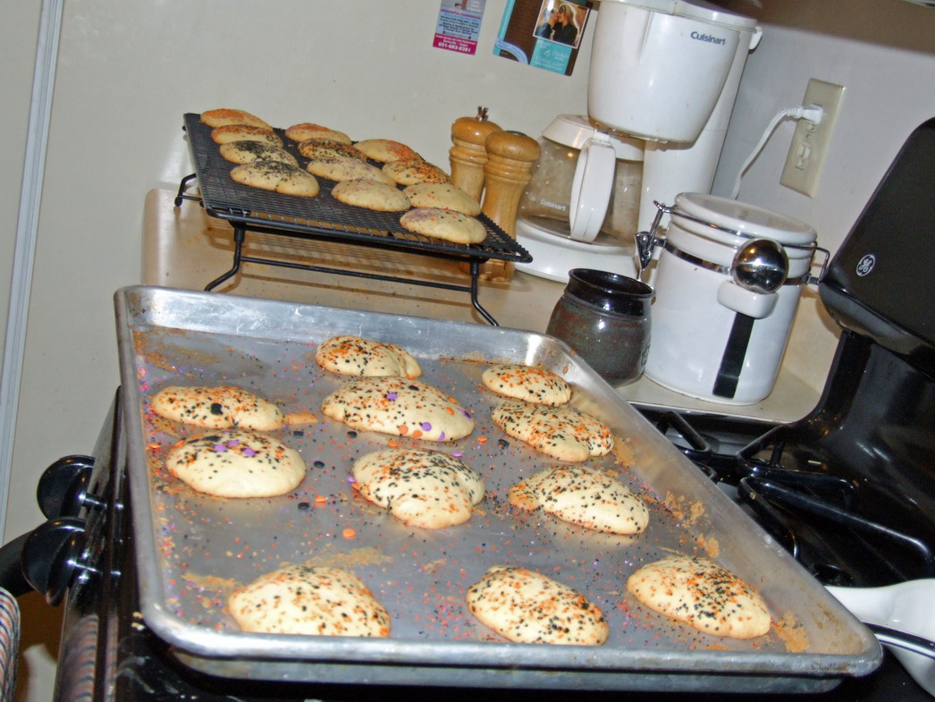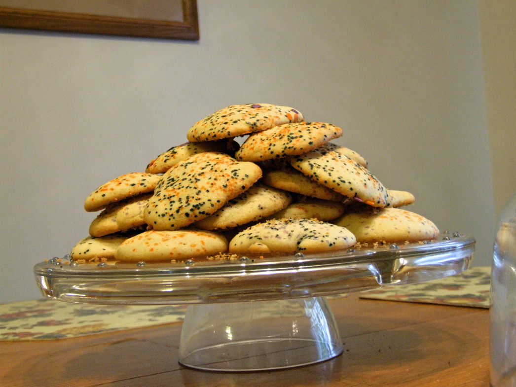 I attempted today to make my first unassisted batch of sugar cookies from my family recipe. They did not turn out as planed, but I was prepared for this. It takes a few batch or years even to get the finesse down for create these treasures. I used my stand mixer but that put way to much air in the dough and there was no way I was going to be able to roll them out. So I didn’t, I just plopped little lumps onto the pan and sprinkled with colored sugar.