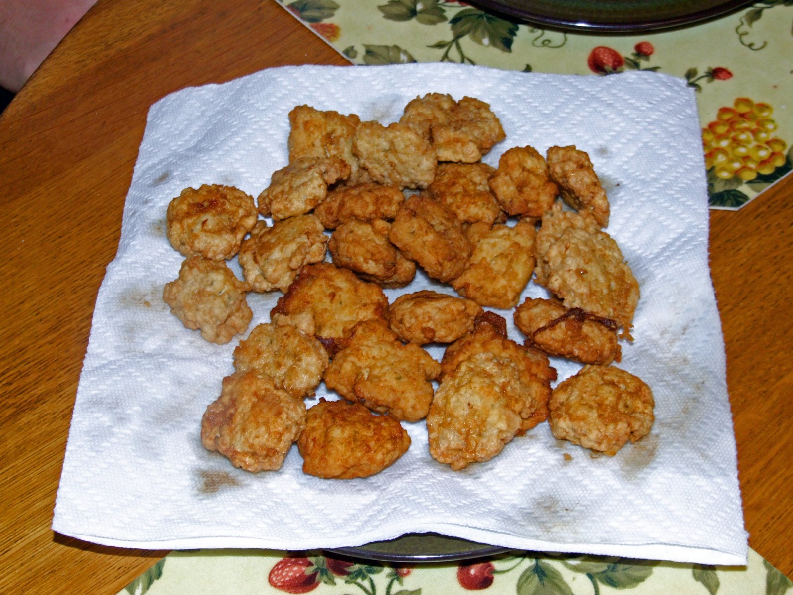 The other day I got a recipe for McDonald’s Style Chicken Nuggets from another blog. Other than making the chicken into a paste it was easy. I so want a food processor now. They were yummy, as Josh is illustrating !!! I am going to try them again soon and add more salt.