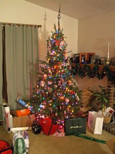 It’s no secret I like Christmas and Christmas Ornaments, it took us a few hours to get everything on. I think that the total came to about 200 ornaments!