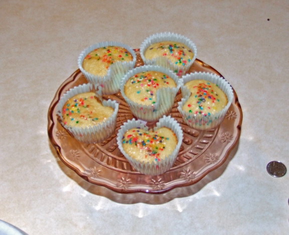 I got my domestic on last night! While Josh was at Rugby practice, I baked! I read a blog yesterday about making Heart Shaped Cupcakes and gave it a try. The first batch did not turn out that well, I over filled the cups. But my second and third pans were dreamy. I justed the yellow cake recipe from the Better Homes and Garden cookbook I got for Christmas. Since this was my first try at making a cake batter from scratch I skipped the icing to make sure the cupcake flavor could stand on it’s own. They are delish!!! I think I will ad just a little lemon juice to this recipe with it is for cupcakes.