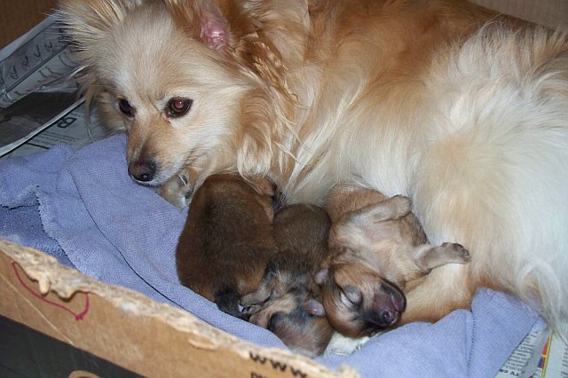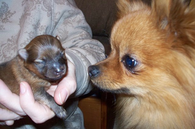 My Aunt Vickie’s Pomeranians has puppies!!!! They are just as tiny as can be, they had three puppies that are healthy and a very good mommy. Plus my 5 foot tall aunt has tiny hands.