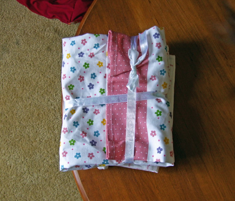 I took a set of coordinating dishtowels and some wide quilt binding and made an apron for a Craft Swap. It was not hard, just needed lots of pins to make sure the seam in the middle stayed perfect.