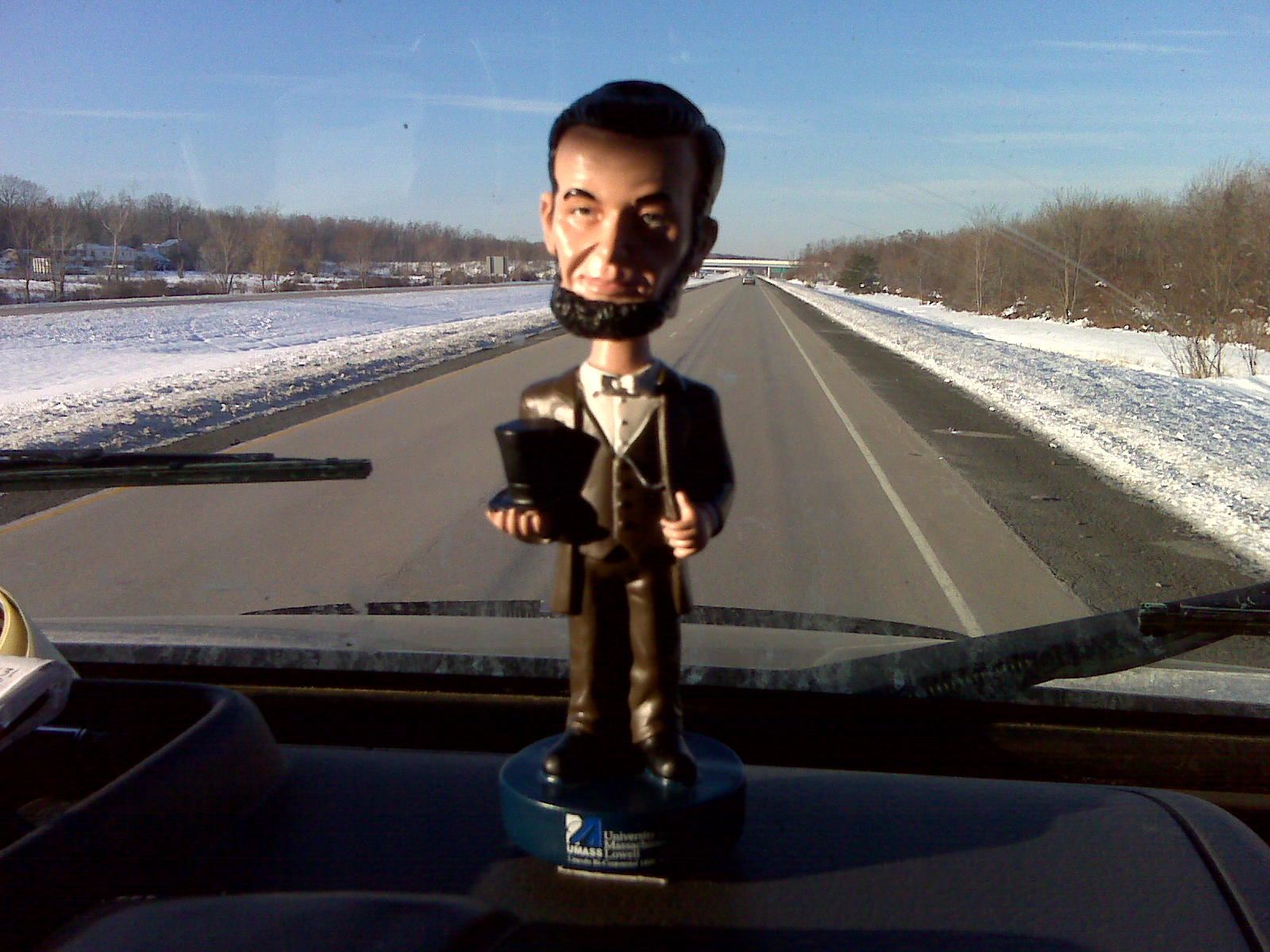 We spent three days in the bitter cold of Lowell, MA. It was not without a few highlights. The sports arena had brought us there for a Lincoln themed game; a local school had a poster contest, Lincoln prizes were awarded, Abe dropped the puck and a costume contest was held.
