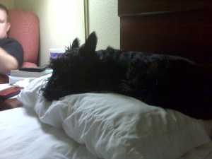 Well evidently Pippi is not the only Scottie out there that needs a pillow or two to get comfy. My buddy Dave can attest to her pillow stealing ability.