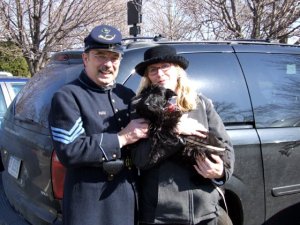 While we were in Springfield there was a very special visitor to our exhibit. These are true Scottie lovers, she puts me to shame. Nan Wynne & Jim Leinecke are legendary within the Scottie rescue community. Nan works a part time job to save money for those sad cases that some into her life. They know her well at the U of I animal hospital. She is willing to take on the hardest cases. I heard of them the first time after a tale of their rescue of Gordon Lightfoot. It was an true joy to meet them, I hod to watch it or Pippi might have snuck home with them. Nan sports her Scottie pride from head to toe, including her glasses.