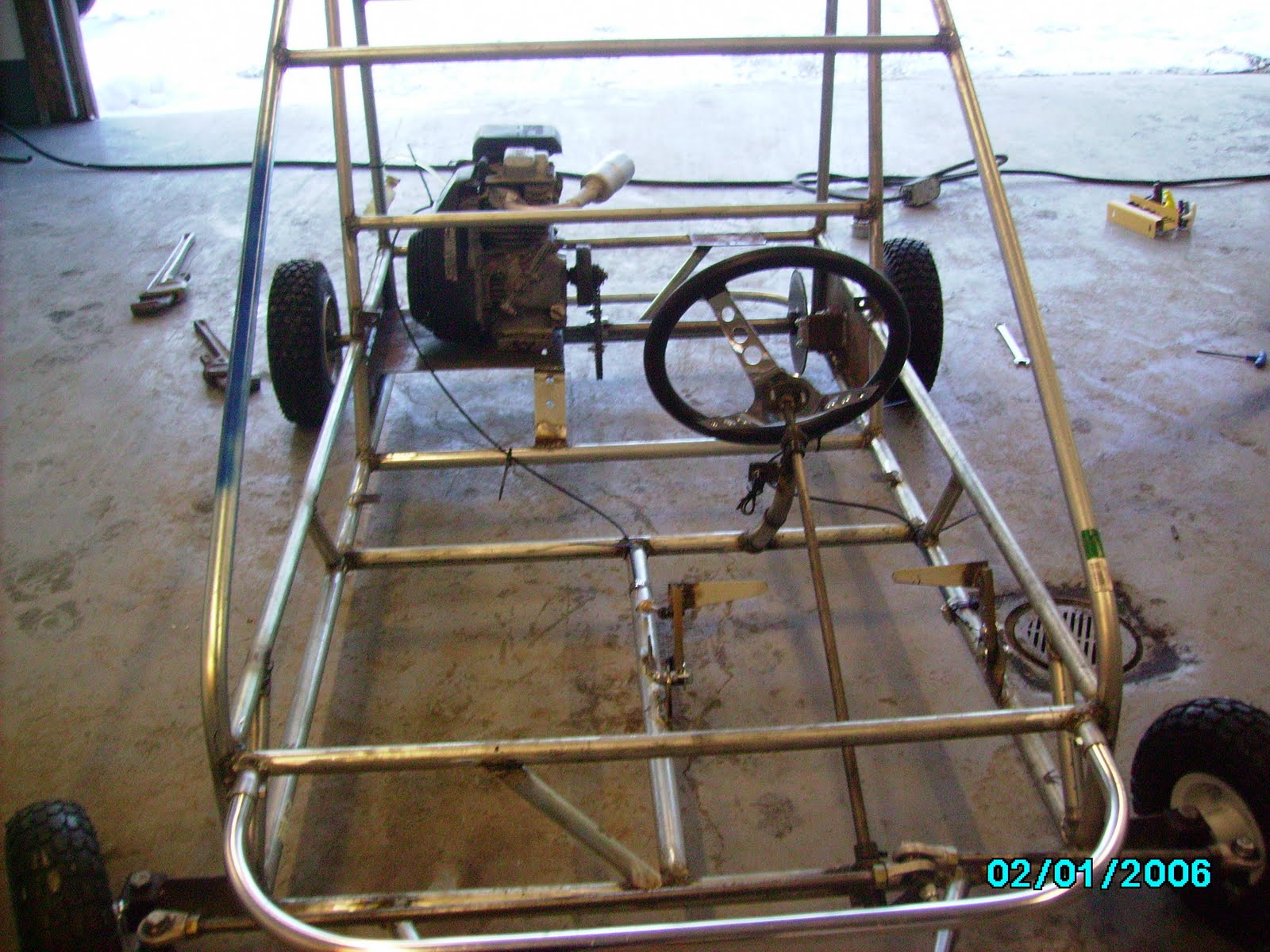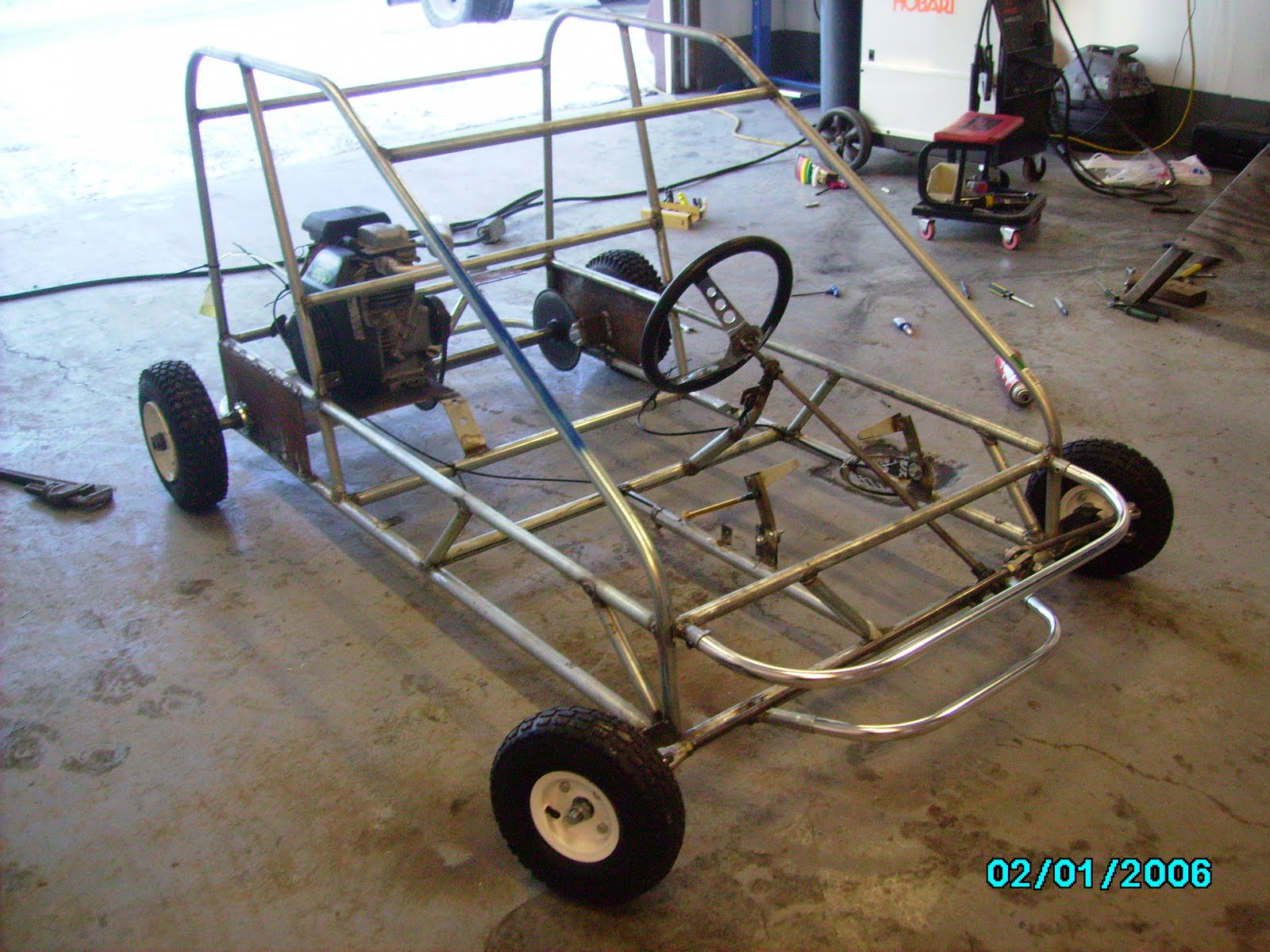 Well “we” don’t go but the cart goes. Here you can see that they are just done with the first steps. The basics I guess. To lament my mom didn’t get any shots of them working on it but this is just the beginning. As promised it will only be worked on when my brother is visiting my parents.