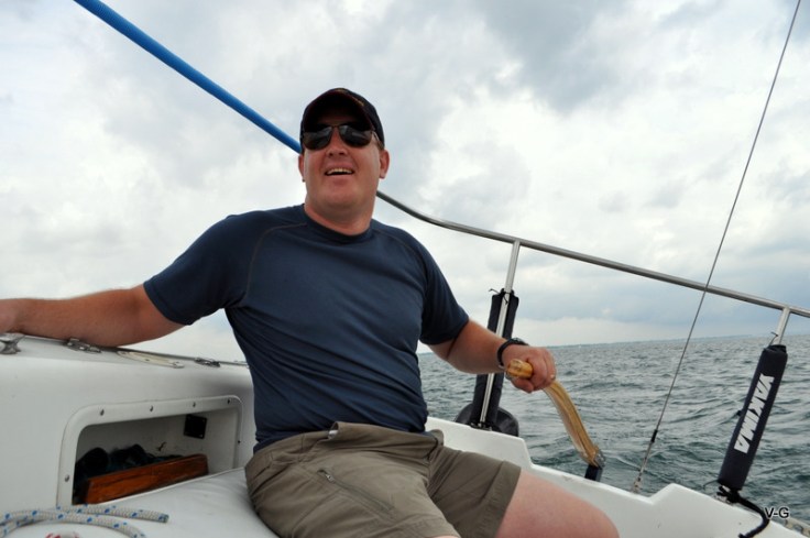 We took the boat out this week, to perfect winds, well perfect for a couple of dudes like us.  As you can see by the grin on Josh’s face he is having a ball.  I am sure we weren’t going as fast as it seamed but let me tell you we were cruising.  It still amazes me that how much I love sailing.  Just so nice to be outside and feeling the air.  I have no doubt that we are doing tons of things wrong but who cares.  I swear we are almost tipped the boat over but I guess that impossible.