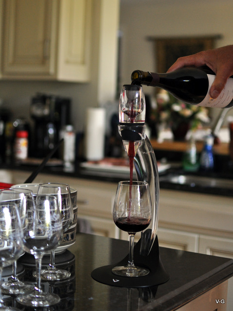 We went back to Greensboro for the 4th to be with the Campbells and Katherine’s family. This is the first time in years we have had a summer holiday off, in our business they are prime time for shows. I guess I should stop complaining about the new tour. After meeting near their home we caravaned up to Southern Virginia. Home many Scottie owners are out there squealing knowing where Rocky Creek is!!! Patents my dears. We were greeted with open arms and open bottles!!! Katherine’s parents live at a mountain resort and love to host. What you see below is the coolest toy, an aerator. Yes it made a great pour but the noise it makes lead to some wonderful jokes. At one point the aerator got put away and Katherine’s dad kept making the noise as we poured glasses.