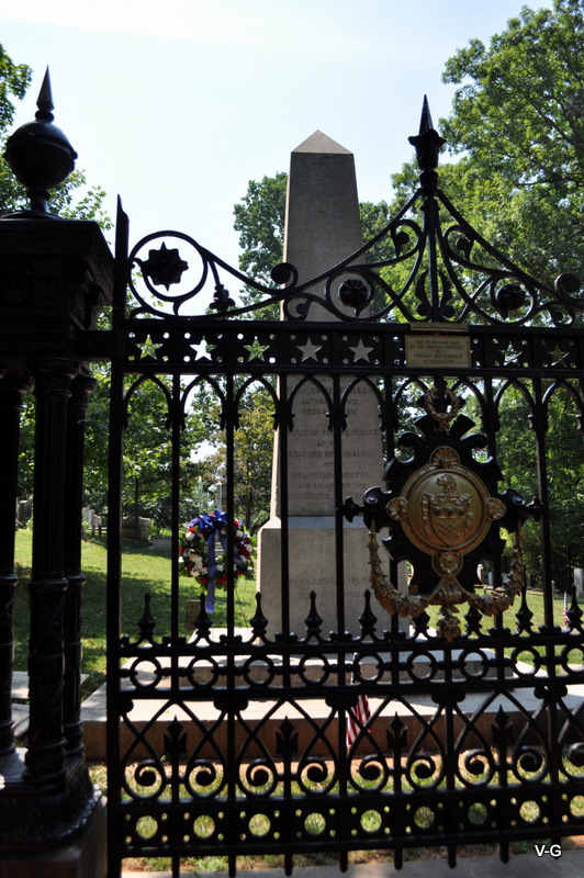 After arriving at the Resort in Virgina, we were looking for something local to do on Monday to fill the history requirement for the weekend. Low and behold Monticello was 45 minutes away! The rear one not like our visit to Montpelier, the non-Madison one. As a general rule we avoid tourist destination on weekends and always on holidays but this was too good to pass up. So we braved the 95 degree heat and crowds to see the place where Thomas Jefferson called home. Below you will see the final resting place of Thomas Jefferson and many generations of his family.