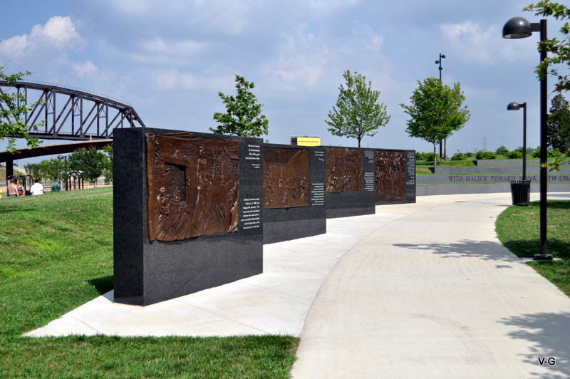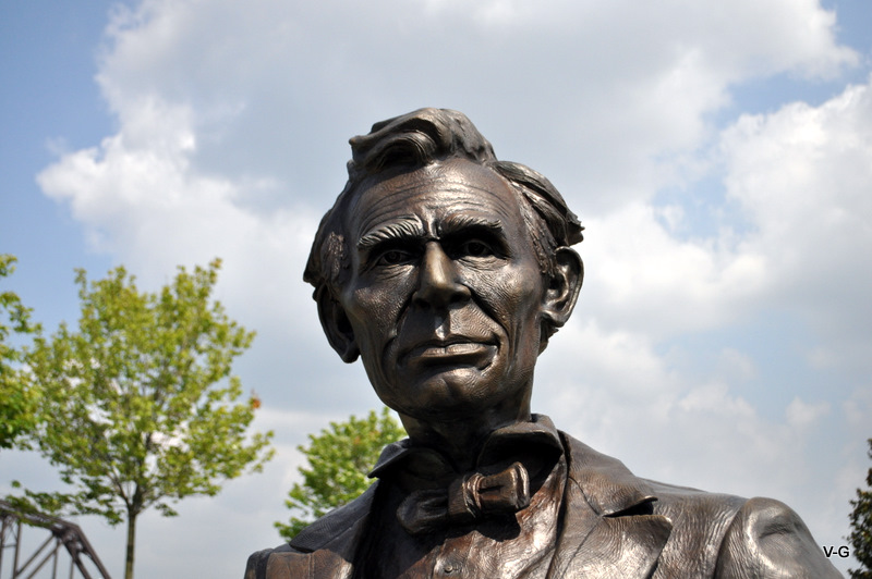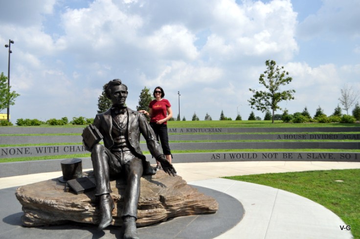 We had some time to track down an Abraham Lincoln monument when we were in Louisville. It is located in the riverfront park; which by itself is wonderful. Full of fountains, art and open fields it’s easy to find a spot of peacefulness in the city. The Lincoln Monument is located in the newer section and contains an amphitheatre. It is a lovely tribute but I am not a fan of the sculpture.