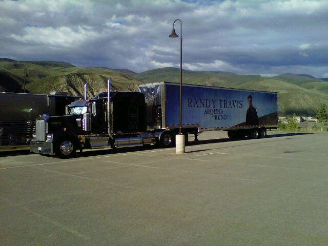 Moving on, since this is so specialized it’s a small network of folks that do this and we often meet folks that haul trucks for musicians. Our company has a mobile gym that gets leased out to all kinds of folks. So last week when we set up the tour bus of Randy Travis, Josh thought he recognized the tractor pulling Randy’s equipment trailer. Well it turns out we know that guy! He has in the past moved out gym trailer for a different celebrity. Josh once had to deliver that trailer to him. Pretty exciting for us to actually run into a friend inside the industry out on the road.