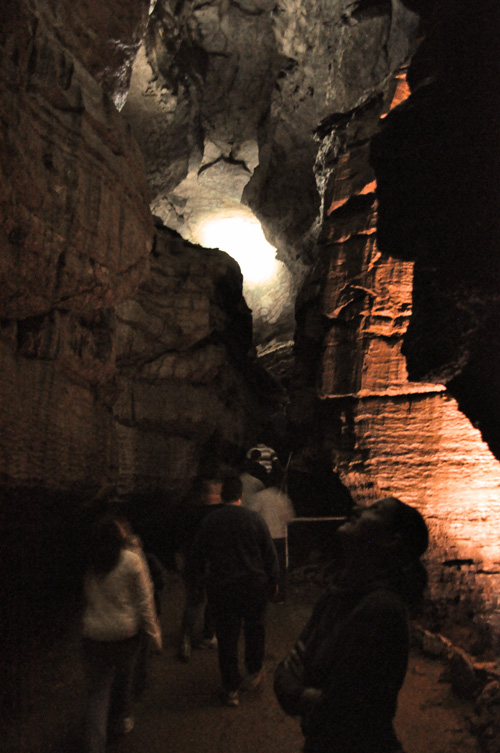 Now that we have gone fully “barefoot”, what I mean is that I no longer use tennis shoes anymore, just my Merrell Barefoot shoes; it was time for another test. As you might recall we somewhat foolishly took a 4 mile hike before we were ready, well weeks later our feet and muscles have been transitioned. This weekend we traveled to Mammoth Cave to take a four-hour, four mile underground tour. This was my first spelunking trip and we picked a “difficult” one to get a little challenge and exercise. I say difficult but we didn’t squeeze into any holes or have to crawl, just ducked once. The difficulty rating was from the elevation changes. We looked into one of the more intense tours but one required you to shimmy through 47 inch openings, which would be a little tight for Josh.