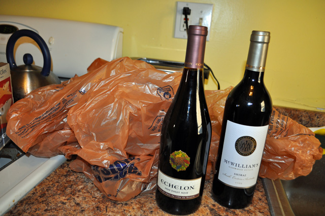 While I’m certainly not the greenest person in the world I do bring reusable shopping bags to the store. On a recent trip to Kroger it was business as usual, even mentioned to the checkout that I had my own bags. Well instead of trying to fit two bottles of wine into my grocery bag she starts whipping out the plastic. Using not one, not two, not three but FIVE plastic bags for two bottles of wine. Now come on! I’m not going to be trekking into the wilderness on unpaved roads when I leave.