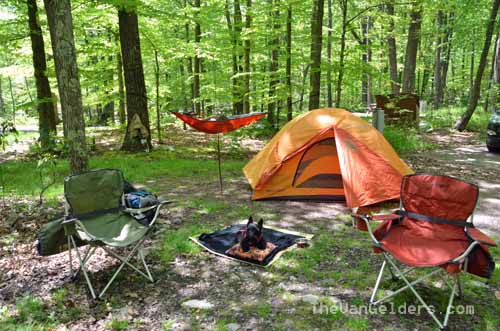 Our chosen form of R&R last weekend was a quick camping trip to Hickory Run State Park in Pennsylvania. It has been more than a year since we have went camping together. Oddly enough we each when while on our separate vacations. While we were lounging about I thought it might be fun to set up an impromptu photoshoot. Get some catalog and add style practice. I also have two very cooperative models.