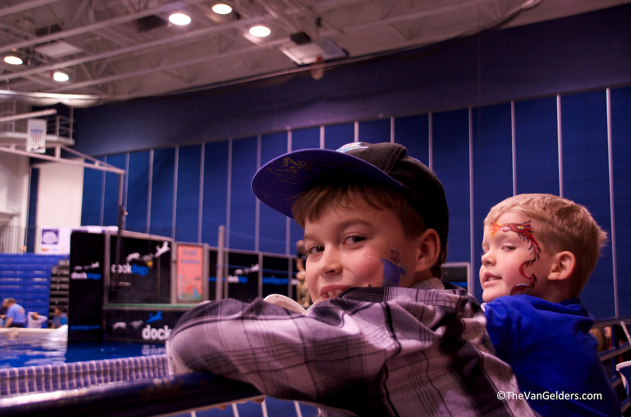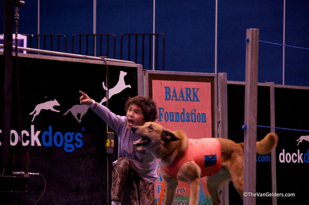 For the next three years Josh’s hometown is host to the Dock Dog world championships.  By chance we were home for the inaugural show at Dubuque’s Five Flags Center.  There was no admission fee and they only charged for some of the seating during the finals.