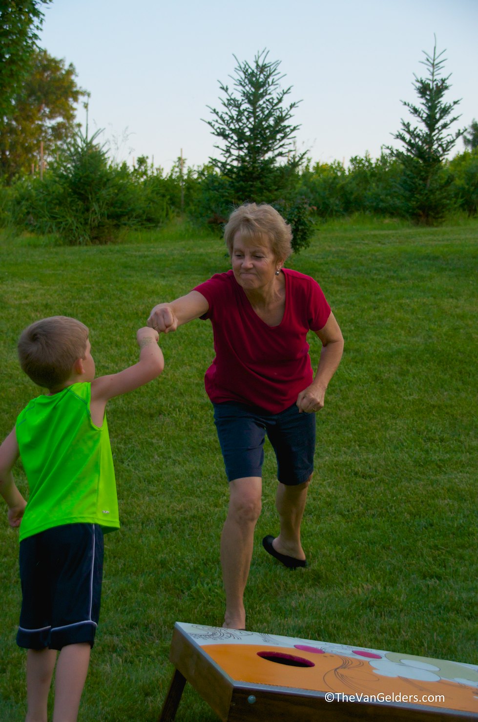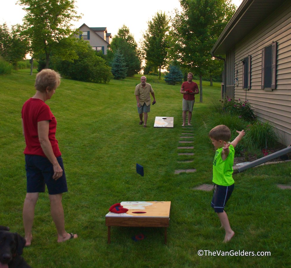 Our nephews call Josh’s mom Nana, I’m from a strictly Grandma family. She is a pretty cool Nana at that. Check out her and one of the boys tearing up on the beanbag circuit.